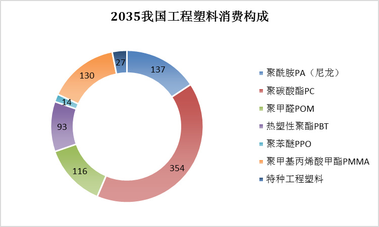 我國工程塑料主要產品消費及2035年預測(單位:萬噸)