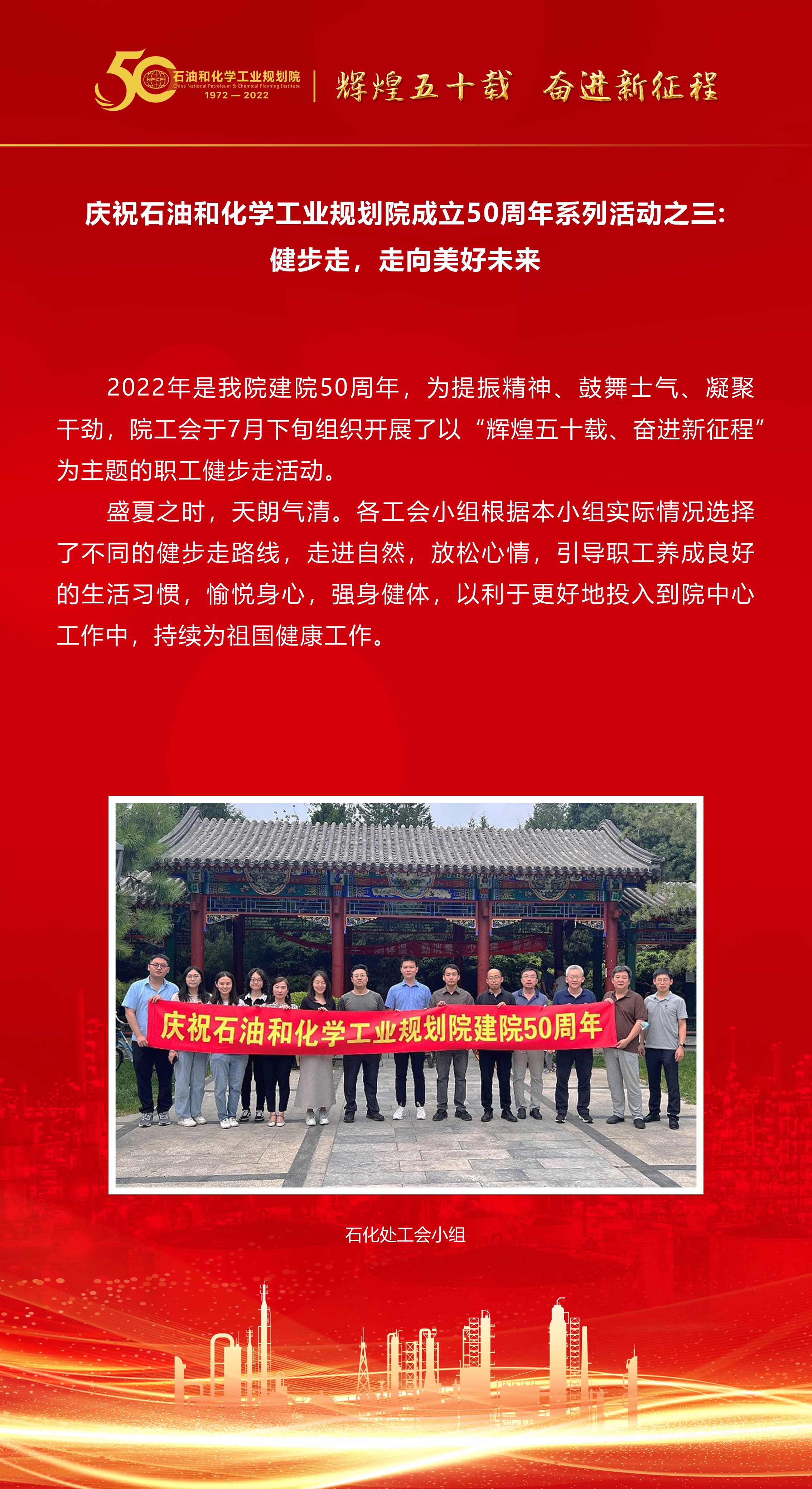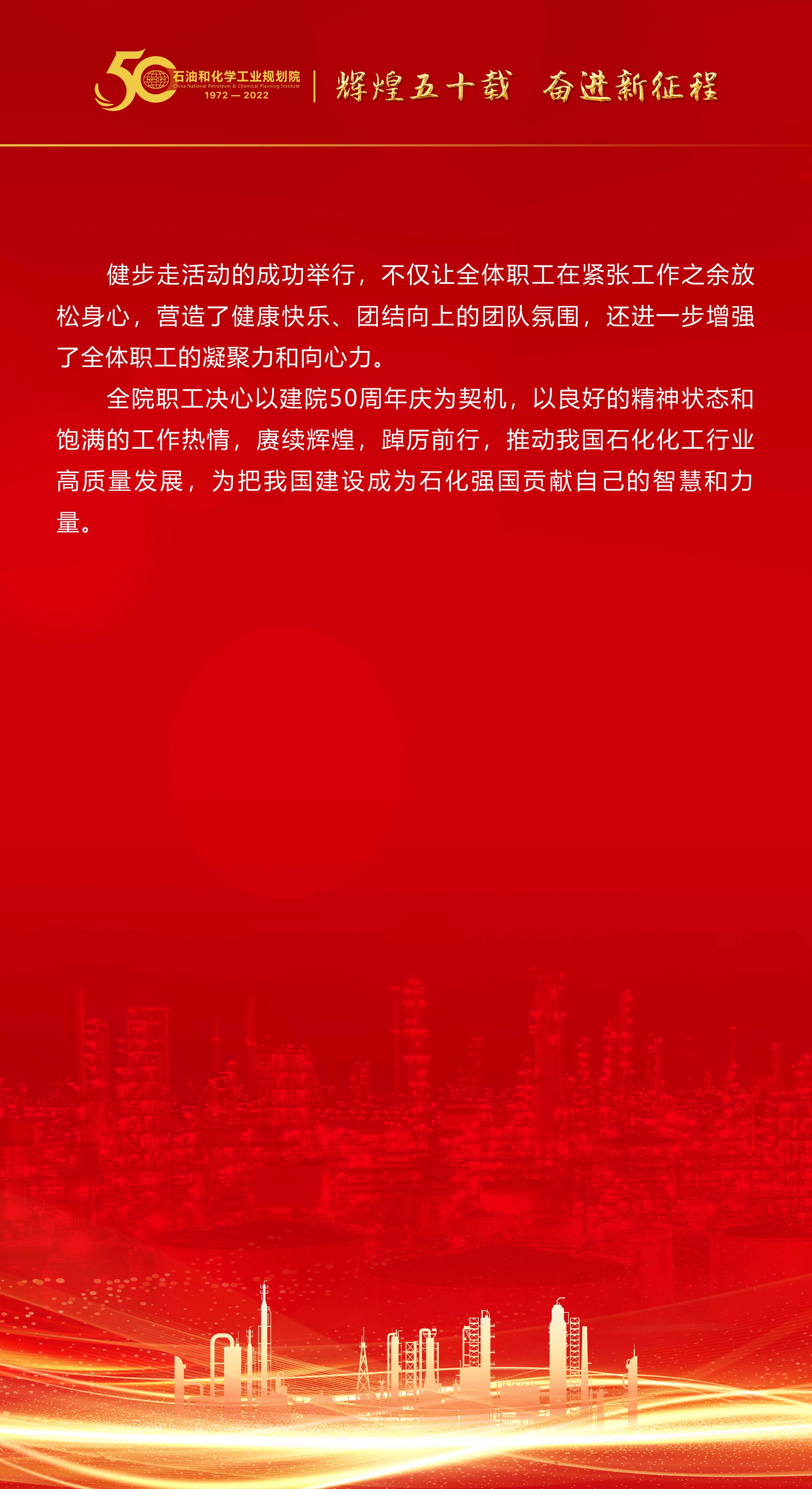 慶祝石油和化學(xué)工業(yè)規(guī)劃院成立50周年系列活動(dòng)之三:健步走,走向美好未來(lái)