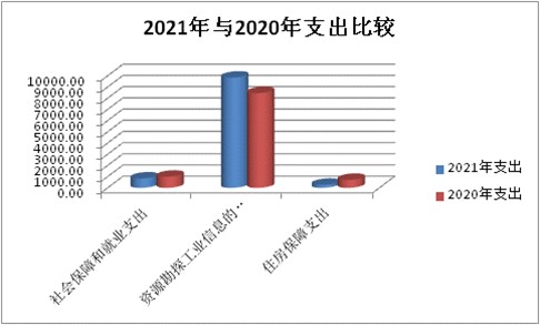 ⑵ 2021年度資源勘探工業信息等支出815.88萬元(其他國有資產監管支出815.88萬元),2020年度資源勘探工業信息等支出825.90萬元,2021年度減少撥款10.02萬元。