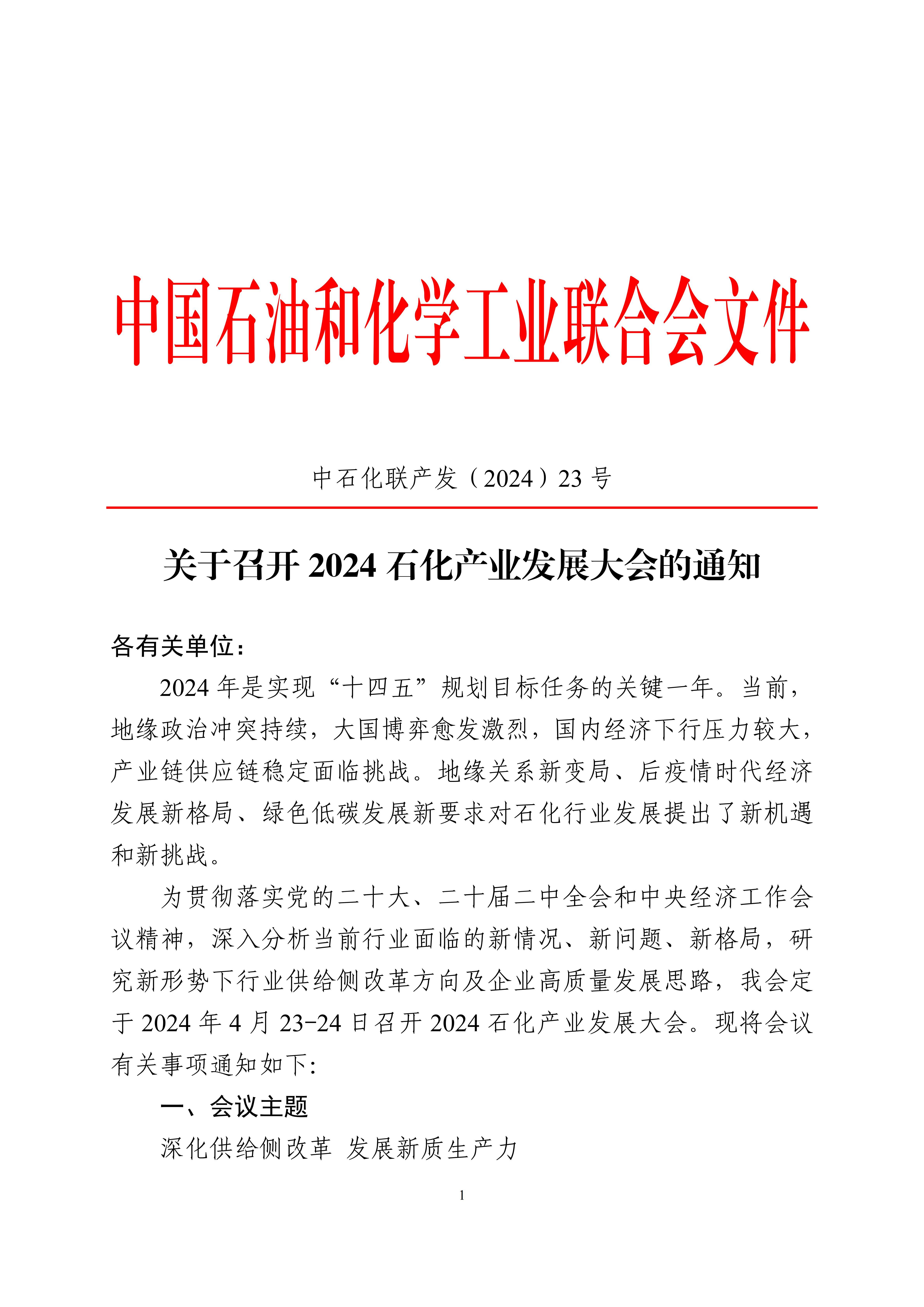 2024年4月23-24日,中國石油和化學(xué)工業(yè)聯(lián)合會將在北京召開《2024石化產(chǎn)業(yè)發(fā)展大會》,會議安排石油和化學(xué)工業(yè)規(guī)劃院組織“規(guī)劃發(fā)展研討會專場”,本次研討會主題是:石化化工領(lǐng)域之未來產(chǎn)業(yè)研究。