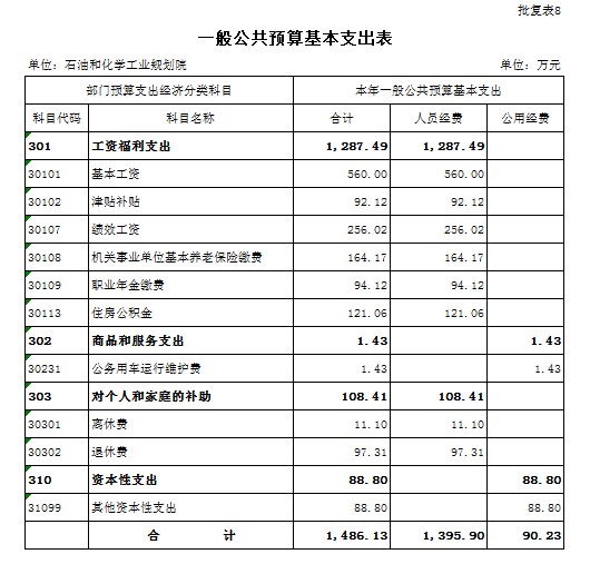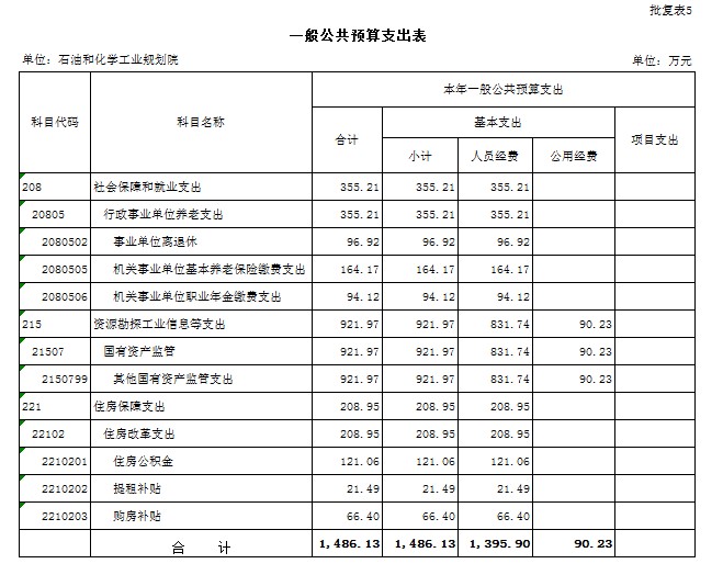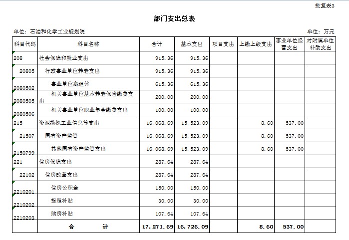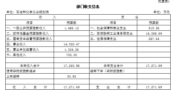 石油和化學(xué)工業(yè)規(guī)劃院部門(mén)預(yù)算