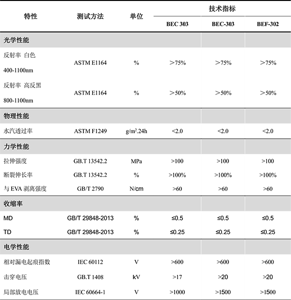 Firstbacksheet復合型系列背板具有多層結構,抗水解型PET作為中間基材,PET兩面中至少有一面復合為PVDF膜或FO膜,采用自動化精密貼合工藝復合而成。EVA面具有高反射率高和強粘結性,空氣面具有優異的長期耐候性。層與層間結合力具有長期穩定性,戶外長期使用無分層現象,該產品已廣泛應用于光伏組件。